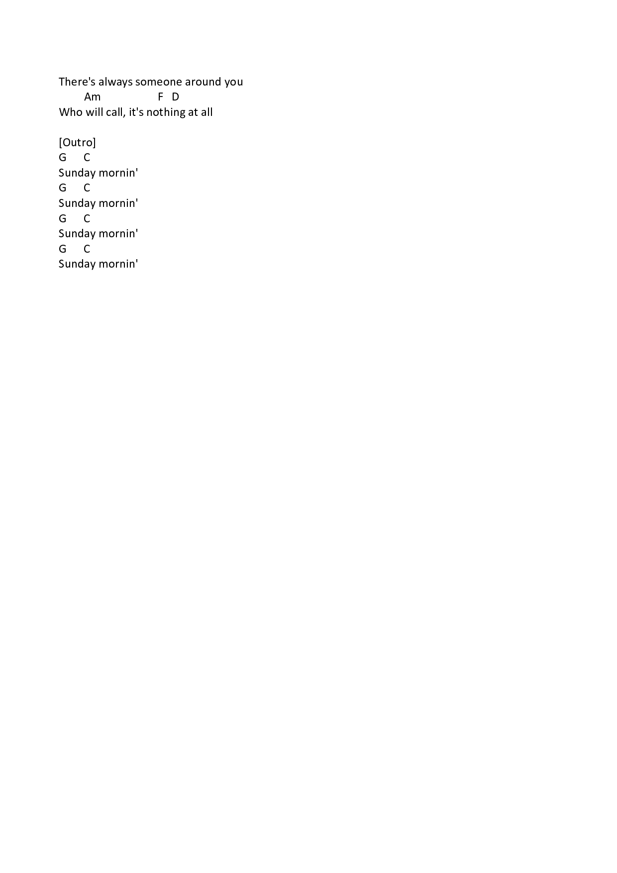 Iniziamo il nostro repertorio con un vero e proprio classicone. Che sia attorno ad un falò con tanti amici in un periodo estivo, a una festa di certo spirito «pre-covidiano» o nella propria camera tra una pausa e l'altra dallo studio (qui sì che percepiamo un sapore tutto Covid-friendly), Wonderwall degli Oasis è l'inno alla spensieratezza più totale. Per avere un suono veramente molto fedele all'originale vi consiglio un capotasto al secondo, ma se non lo possedete potete anche farne a meno e suonare le note così come le leggete, senza ulteriori diavolerie da chitarristi.